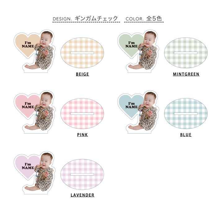 流行りのギンガムチェックとくすみパステルカラー、ハートがかわいいデザイン。