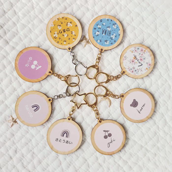 国産ひのきの、優しい雰囲気のお名前キーホルダー。