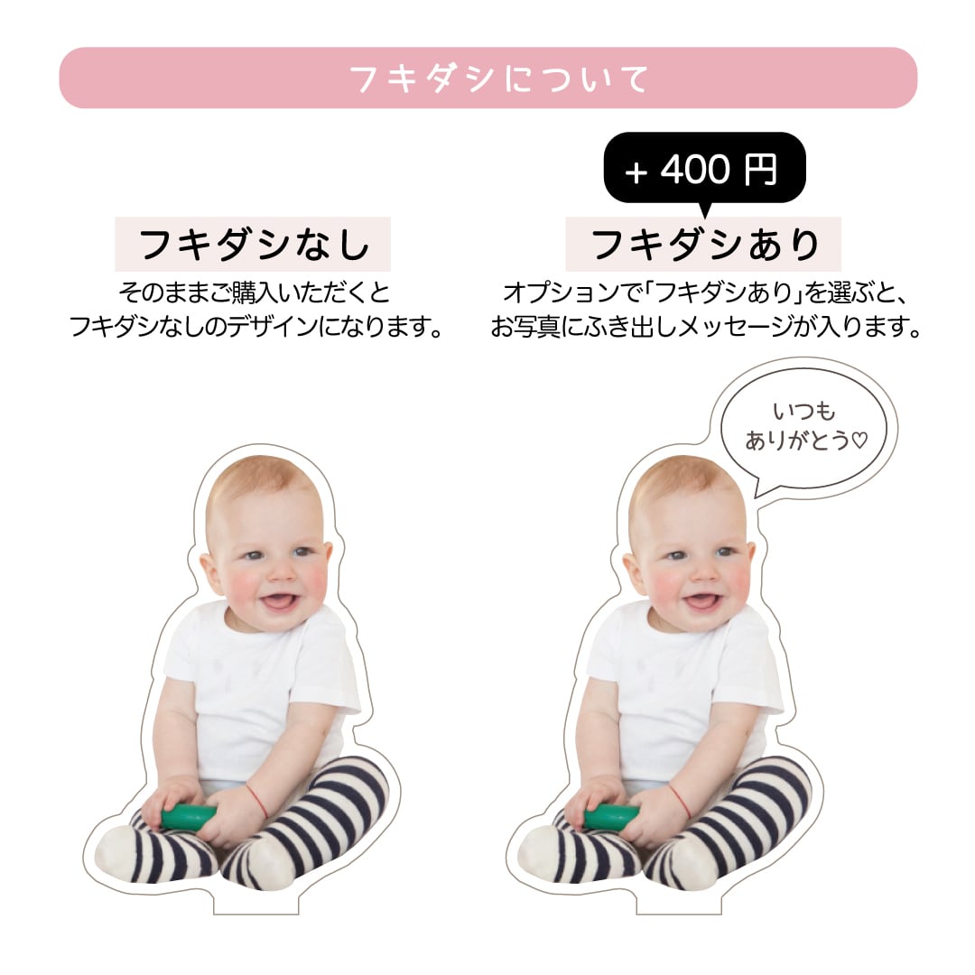 また、フキダシのデザインをご希望の場合はオプションで「フキダシあり」をお選びください。